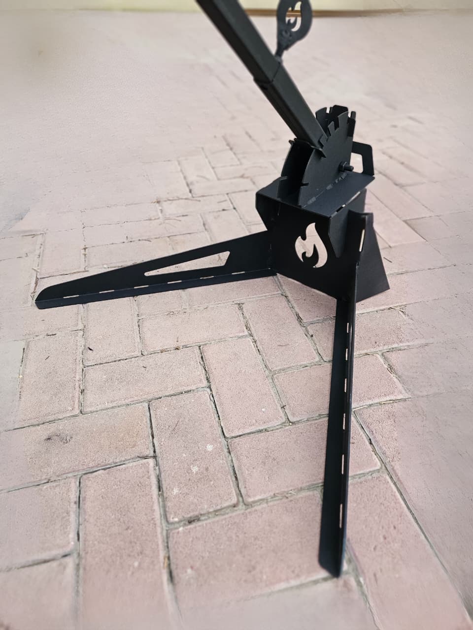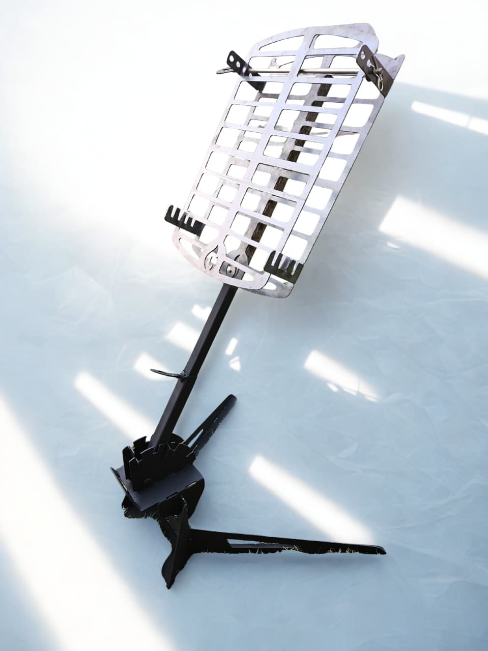 Heavy-duty cross for slow-cooking meat over open fire.
